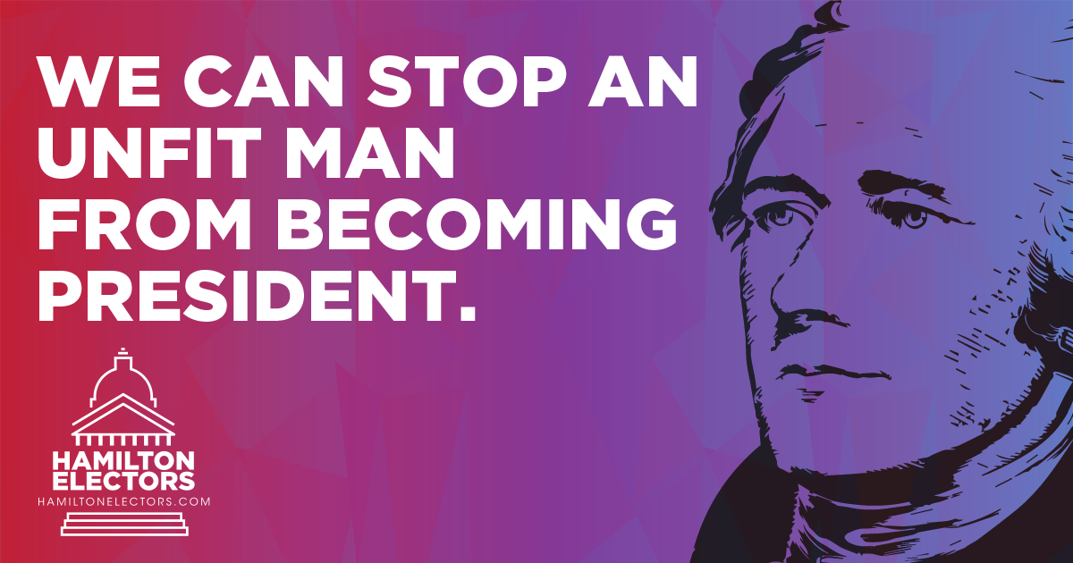 We honor Alexander Hamilton’s vision that the Electoral College should, when necessary, act as a Constitutional failsafe against those lacking the qualifications from becoming President. In 2016 we’re dedicated to putting political parties aside and putting America first. Electors have already come forward calling upon other Electors from both red and blue states to unite behind a Responsible Republican candidate for the good of the nation.